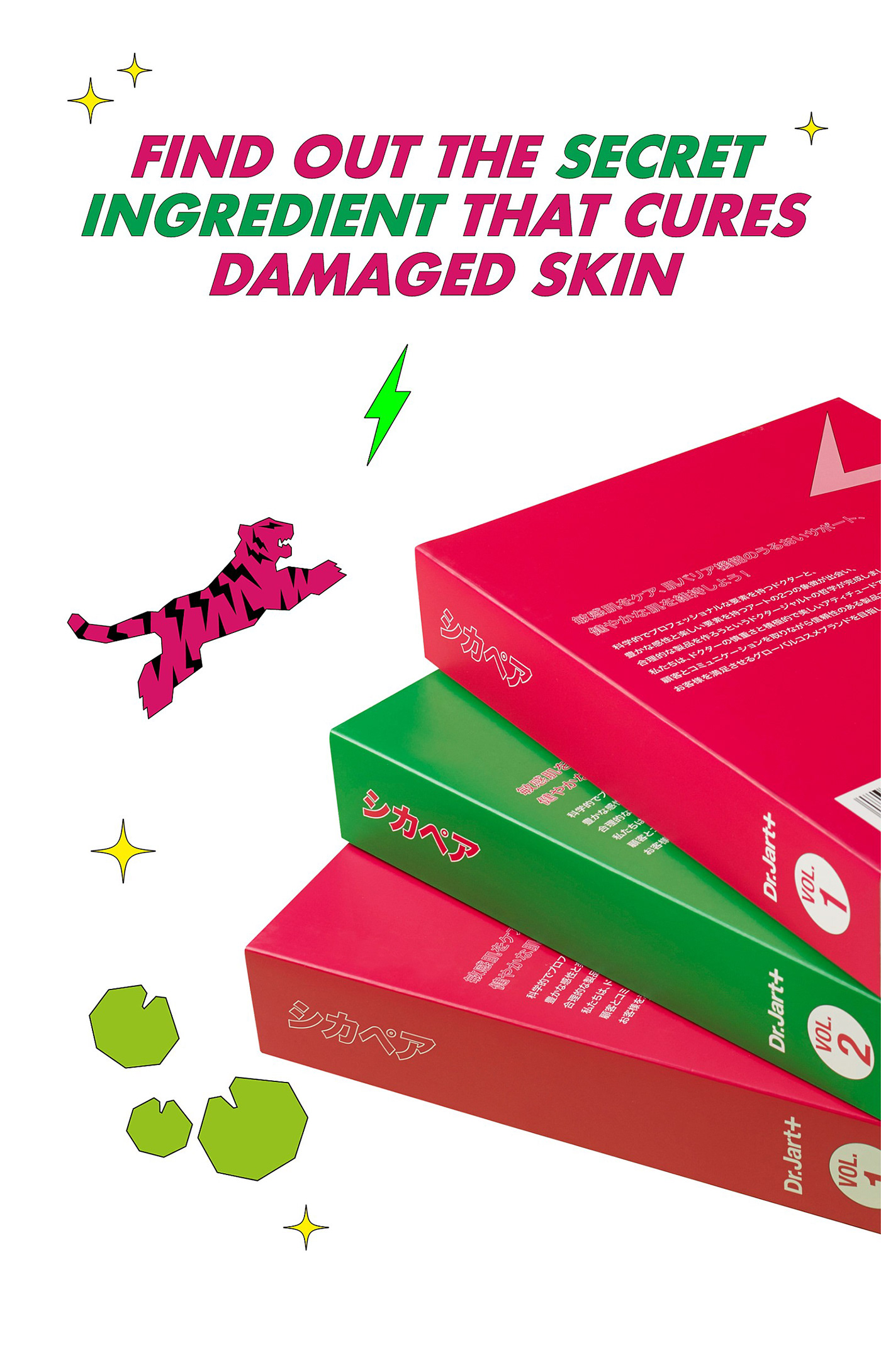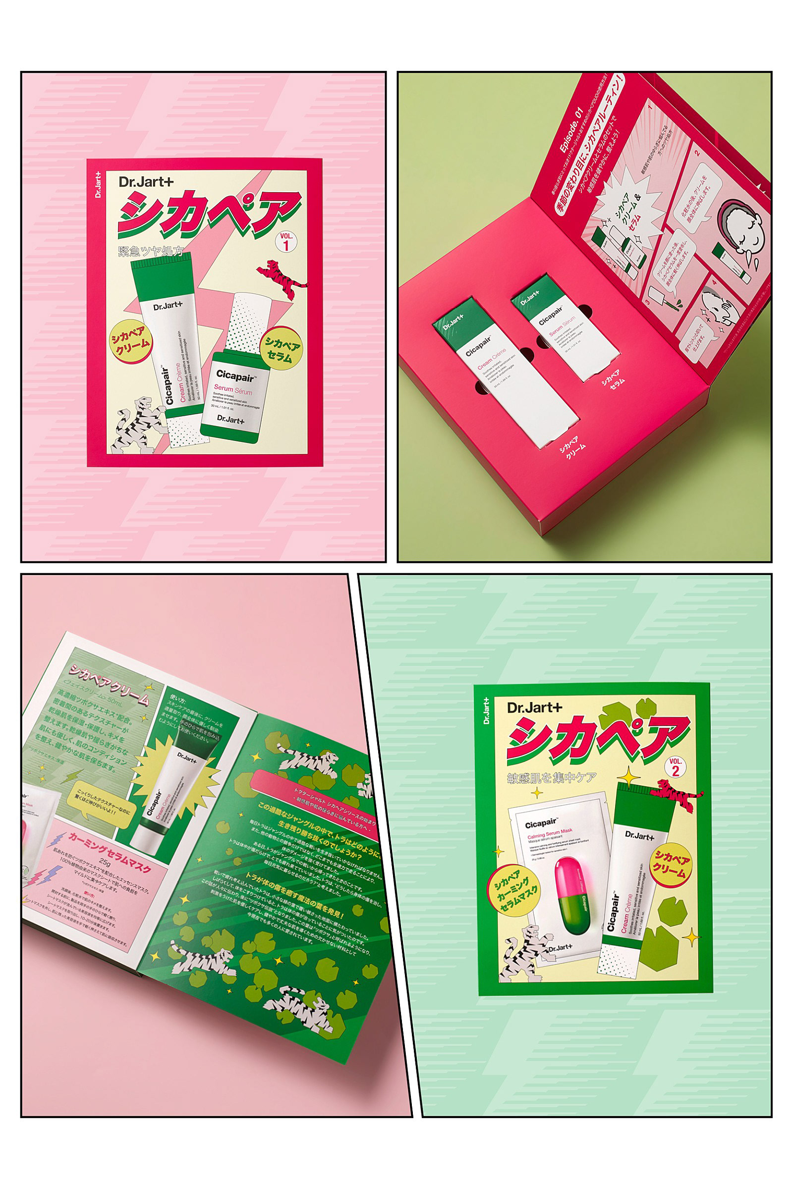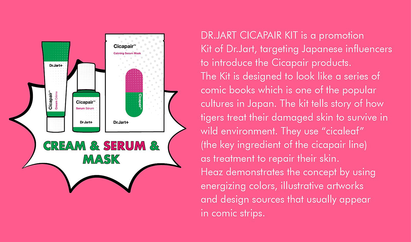 這是 Dr Jart的促銷工具包的包裝設計,旨在向日本介紹Cicapair產品。這套套裝的設計看起來像是日本流行文化之一的漫畫書。