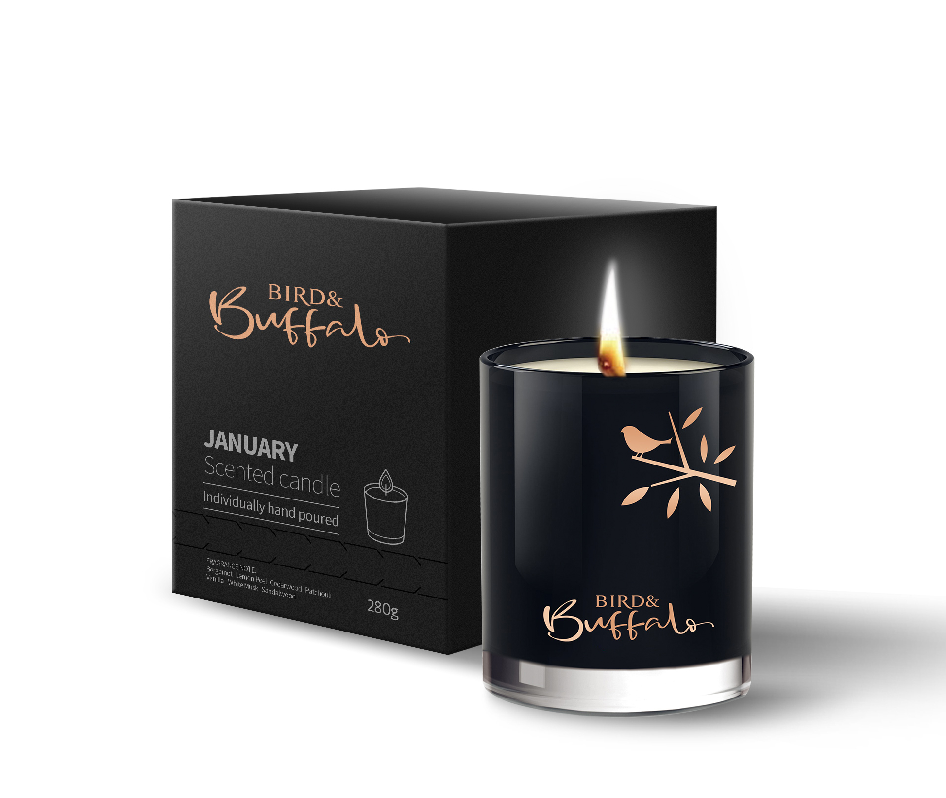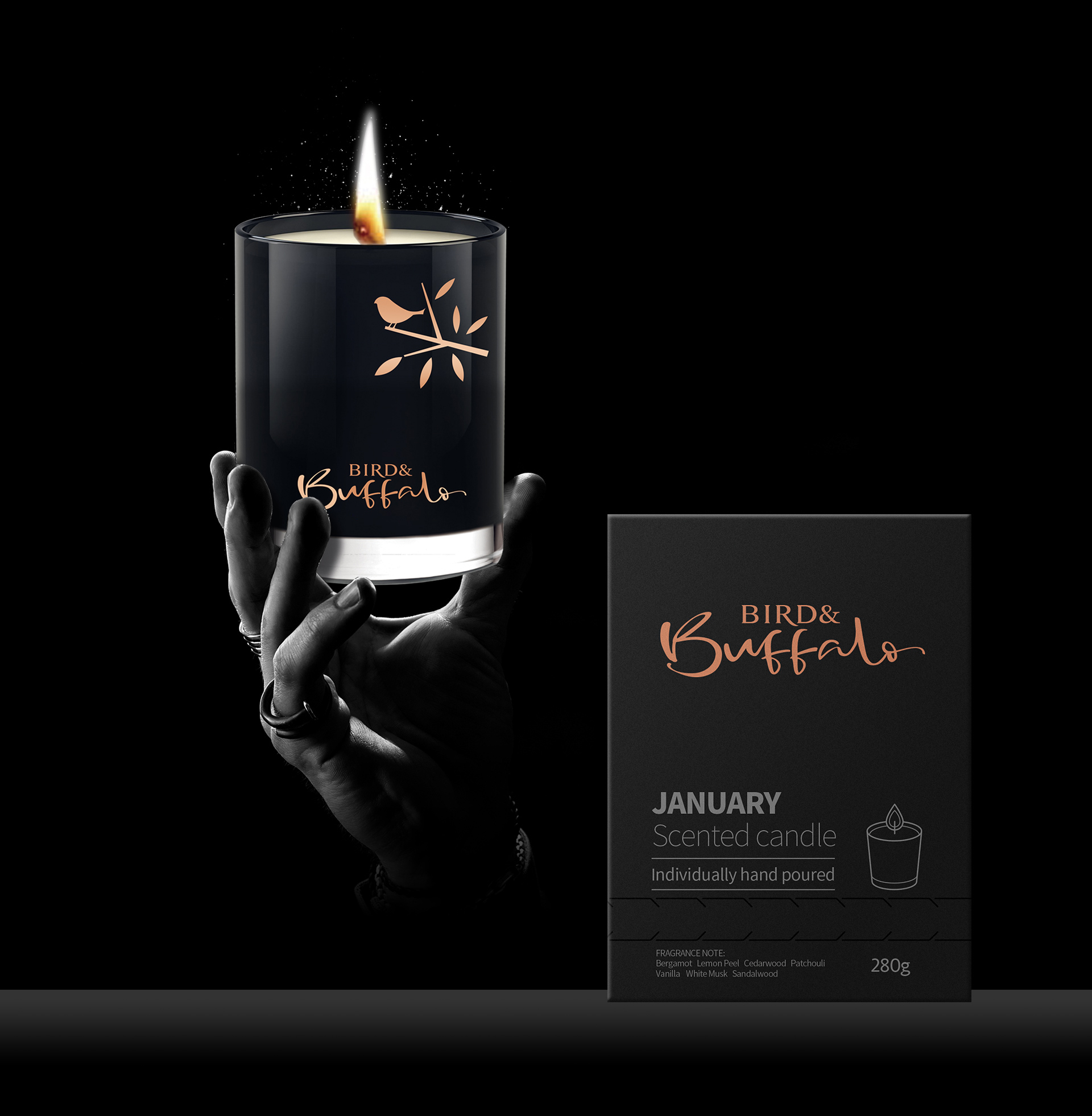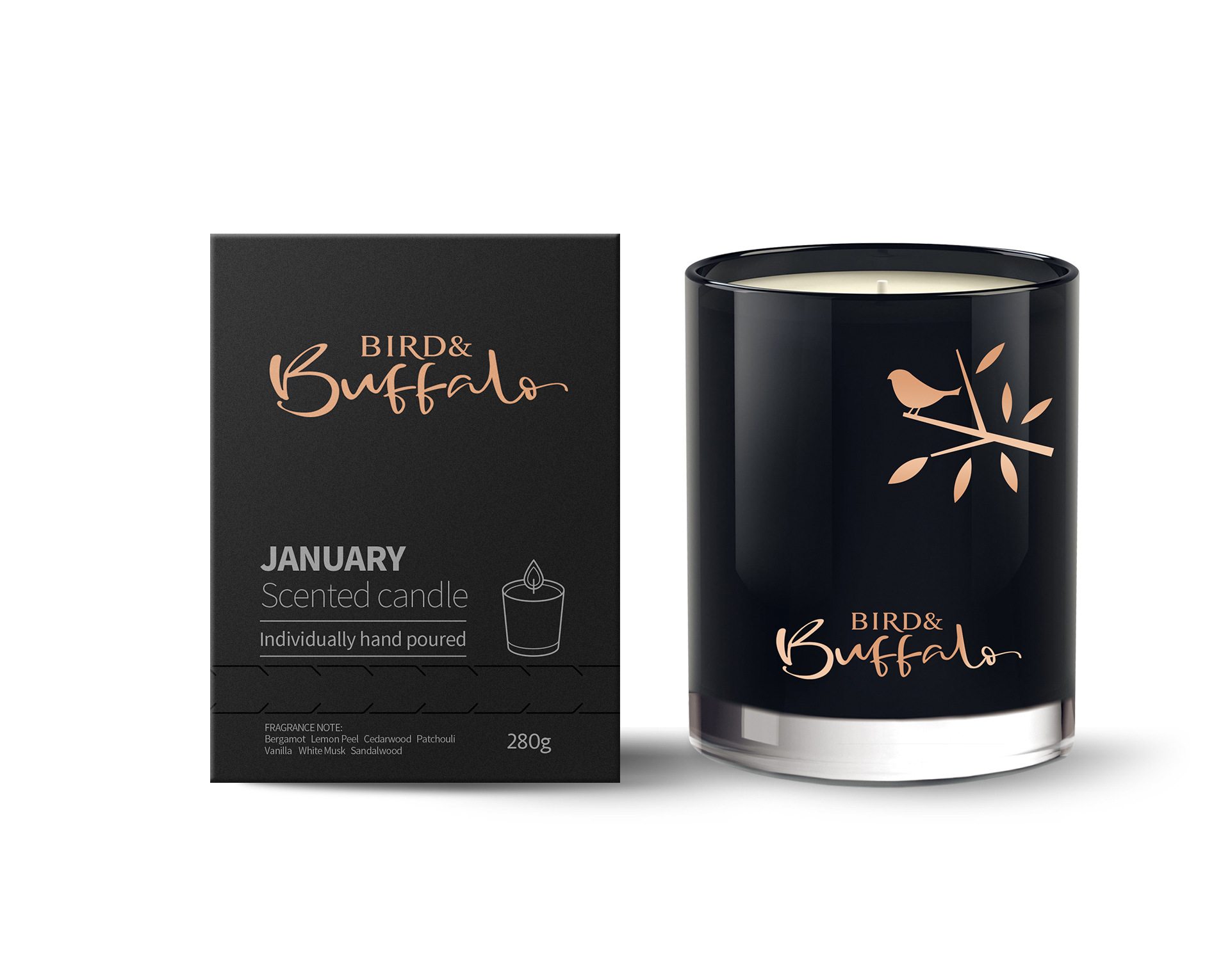 朝歌為“bird&buffalo”提供品牌標志設計_香薰容器設計_香薰蠟燭包裝設計等服務