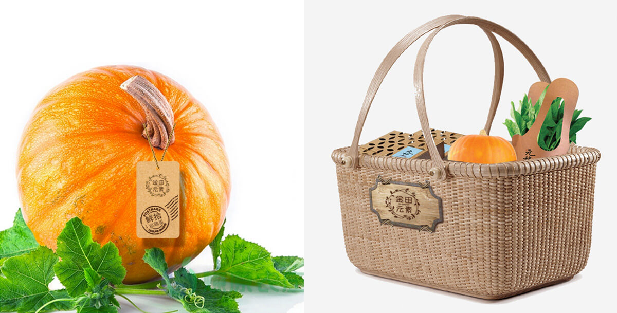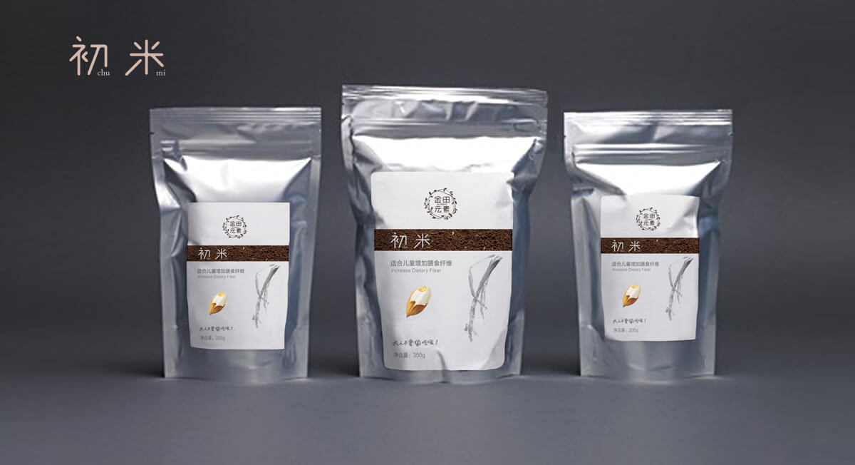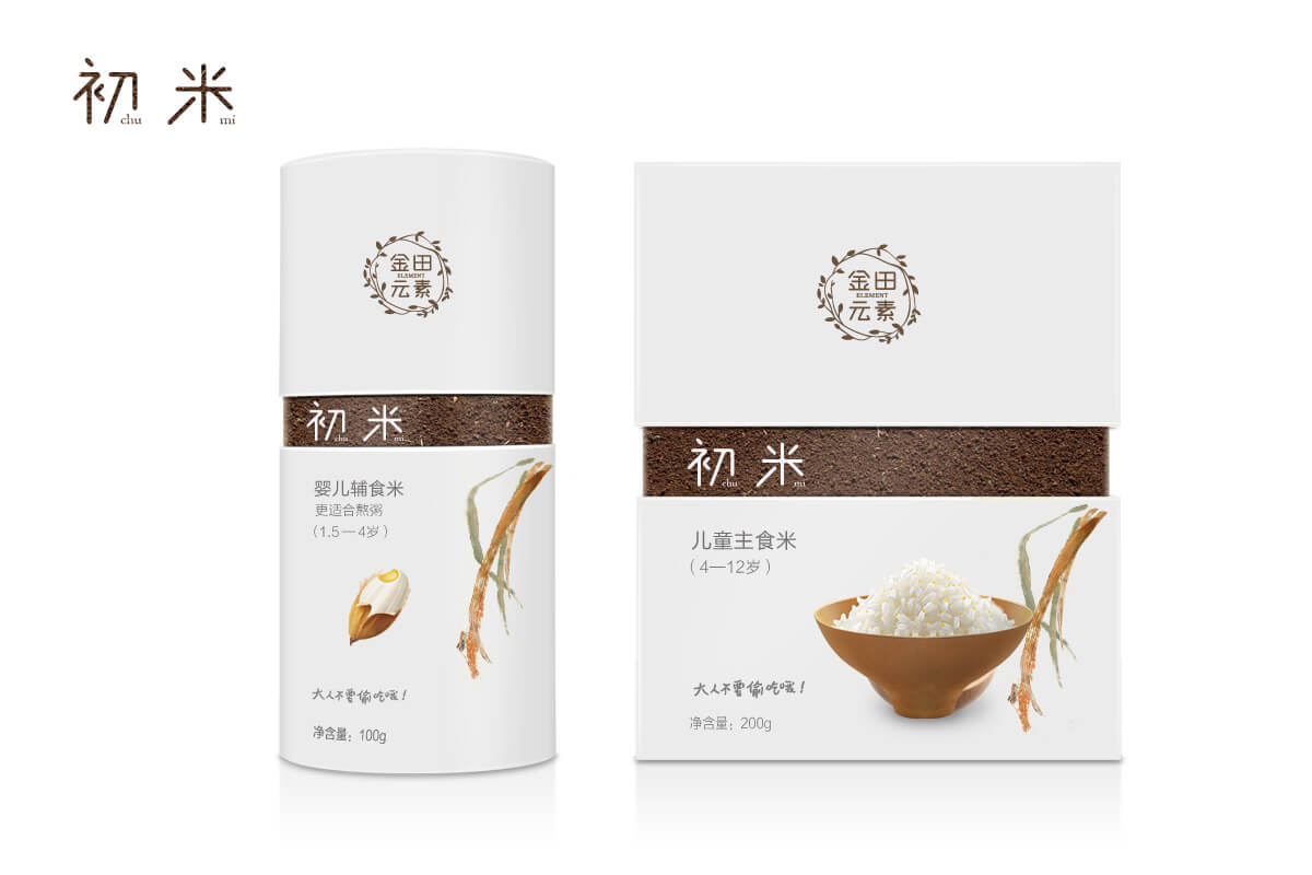 除了建立品牌符號,朝歌還特別針對金田大米和果蔬產品,進行了規劃設計,涉及產品概念提煉、產品結構初步規劃、產品系列形象設計等內容,包括初米、初油、鮮采、鮮拾、鮮摘系列,為品牌創造故事情境,賦予品牌溫度,拉近與消費者的距離。
