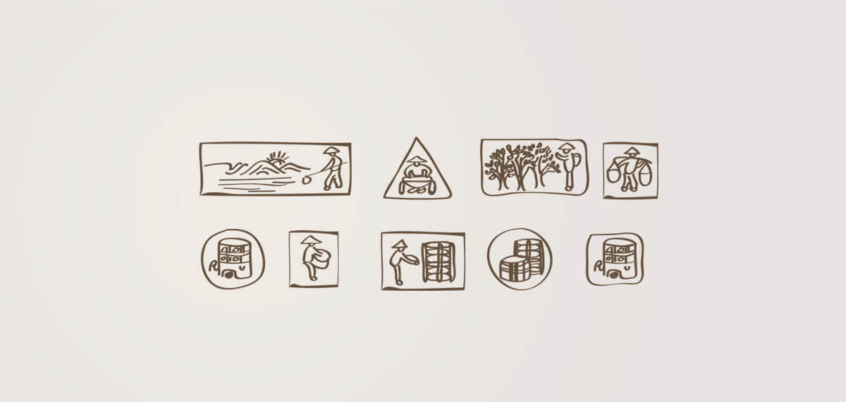 朝歌提煉自然元素和農耕符號,對品牌形象和包裝視覺進行了規劃和設計。原生態的品牌印象,為品牌系列應用的展開確立統一基調。